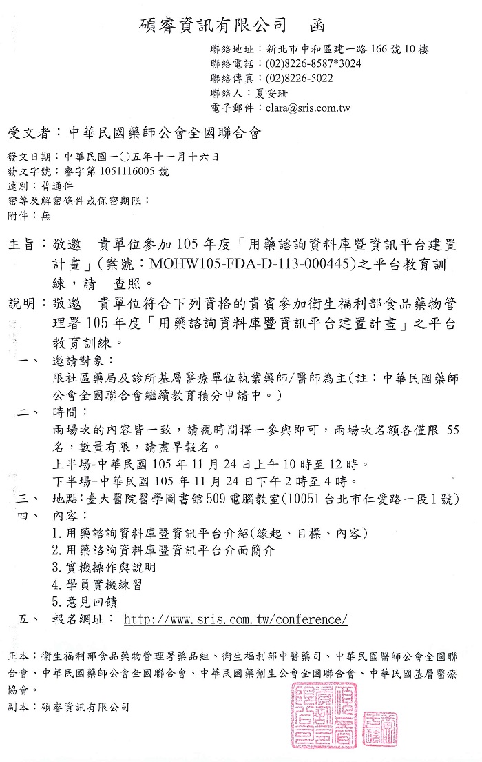 用藥諮詢資料庫暨資訊平台建置計畫之平台教育訓練