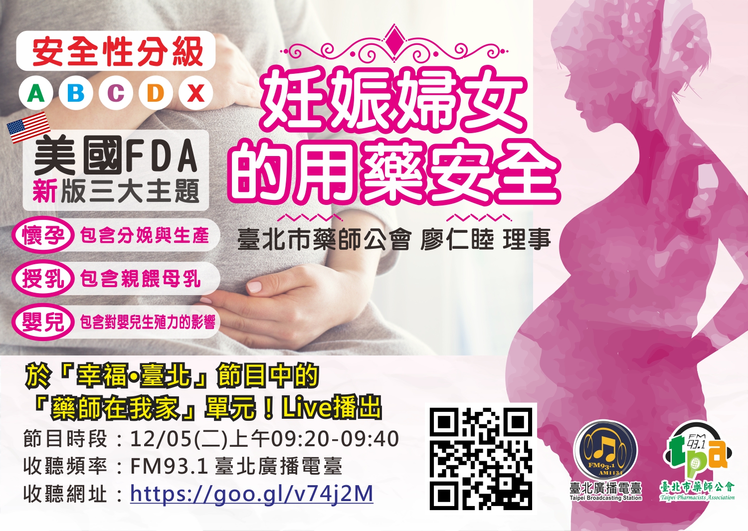 節目中將介紹「台灣藥物的安全性分級」、「使用上有無限制或問題 」、「原有慢性病用藥,懷孕後需要停藥嗎? 」以及「中藥比西藥安全? 」。